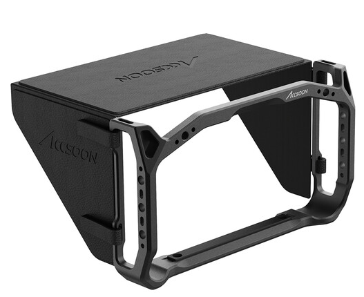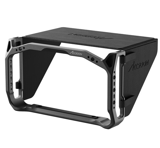 Ohišje je opremljeno z več vgrajenimi 1/4″-20 ženskimi navoji, ki omogočajo enostavno pritrditev dodatkov, kot so ročaji, artikulirana ročaja ali pritrdilna oprema. Vgrajeni reži za pasove na straneh omogočajo uporabo ročnih ali vratnih pasov za varnejše rokovanje med ročnim delovanjem. Priložena snemljiva sončna kapica pomaga zmanjšati bleščanje in izboljšati vidljivost zaslona v svetlih zunanjih okoljih, kar jo naredi idealno za profesionalno snemanje na snemalnem prizorišču ali na lokaciji.
