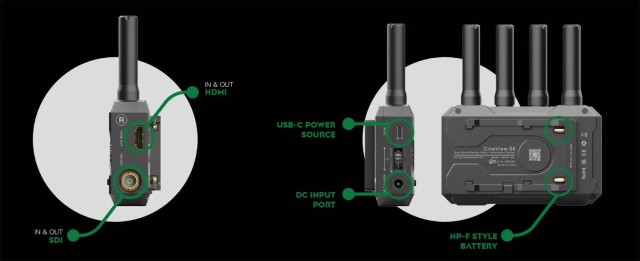 CineView SE je brezžični video oddajnik in sprejemnik z novo najboljšo zakasnitvijo v razredu, ki znaša manj kot 50 ms. CineView SE lahko prenaša video vir prek SDI in HDMI do vhodov/izhodov 1080p 60fps. Signal hkrati prenaša na dvopasovnih frekvencah 2,4 GHz + 5 GHz za večjo stabilnost signala in pošilja video na impresivnem največjem dosegu 1200 čevljev neposredne vidljivosti.