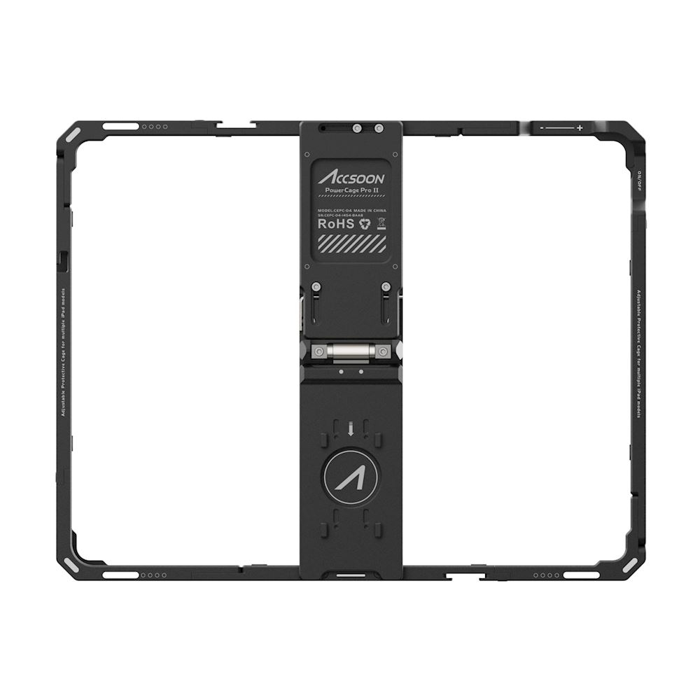 Accsoon PowerCage Pro II je lahka, natančna zaščitna kletka z integriranim napajanjem, zasnovana za iPad Pro 12,9″. Narejena je za profesionalne filmske in televizijske delovne tokove, ponuja varno pritrditev, več točk za dodatno opremo in neprekinjeno napajanje USB-C, hkrati pa ohranja popoln dostop do upravljalnih elementov in združljivost z Apple Pencil.