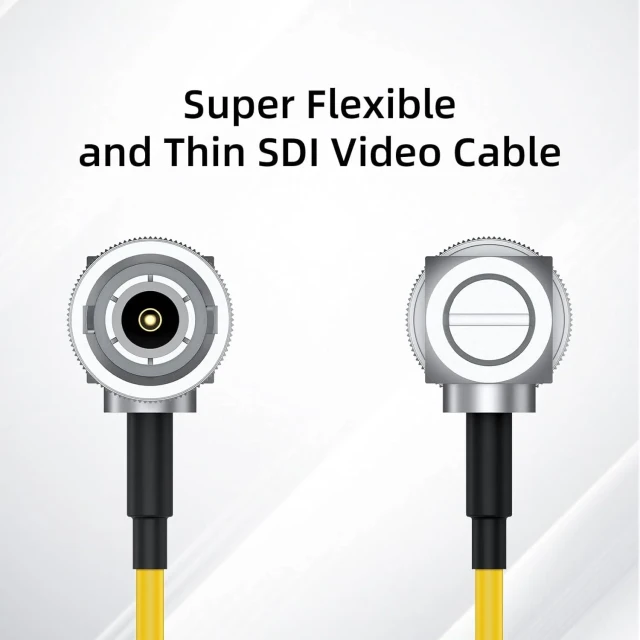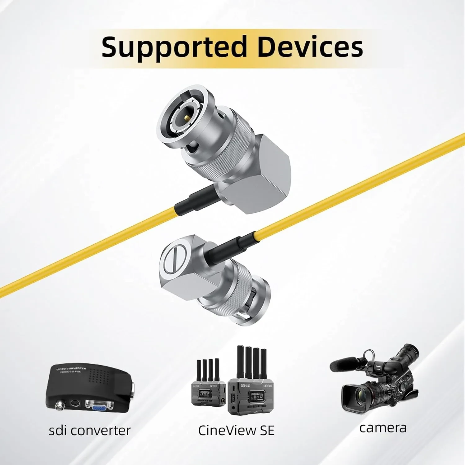 Accsoon ACC-XC-BNC-SDI-80-YELLOW je visokokakovosten kabel SDI z desnim kotom, zasnovan za stabilen prenos videa brez motenj, idealen za uporabo s sistemi Accsoon CineView SE, Quad in SeeMo Pro.