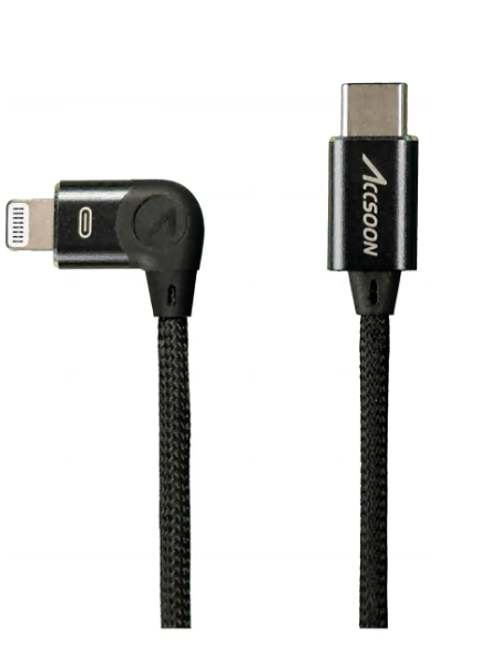 Accsoon ACC-XC-UIT02-CL100 USB-C na Lightning kabel je trpežen, pleten 100 cm kabel, zasnovan za SeeMo in SeeMo Pro. Omogoča hiter prenos podatkov in zanesljivo polnjenje, hkrati pa omogoča fleksibilno namestitev dlje od kamere ali video vira.