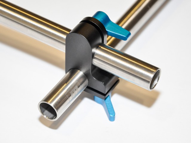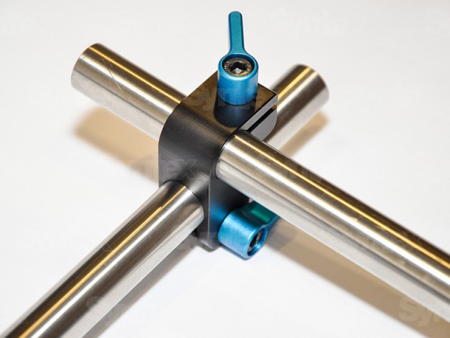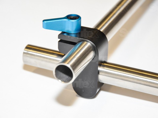 Kotni nastavek za palice. Omogoča medsebojno pritrditev palic pod pravim kotom. Uporablja se za palice premera 15 mm.
