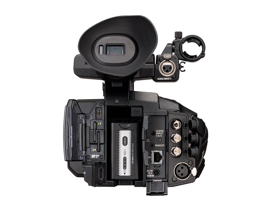 - 4-kanalni zvočni vhod: kamera ima dva uravnotežena vhoda XLR in 3,5-milimetrski stereo mini jack vhod, kar omogoča priključitev do štirih zunanjih mikrofonov ali linijskih zvočnih signalov za 4-kanalno 24-bitno snemanje zvoka LPCM