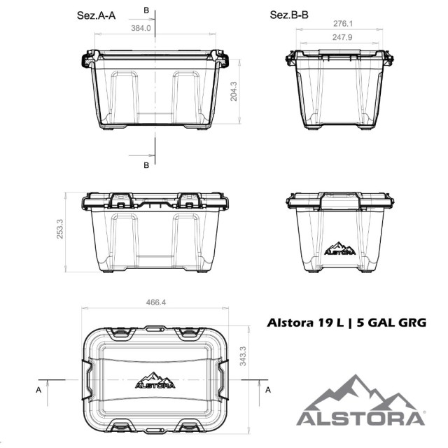 Zabojniki Alstora se lahko zlagajo drug na drugega in varčujejo s prostorom: ko so prazni, se lahko zlagajo drug v drugega, ko so polni, pa jih je mogoče zlagati za urejeno in funkcionalno skladiščenje. Vgrajene reže v pokrovu in dnu so namenjene pritrdilnim trakom, ključavnicam in/ali pečatom.