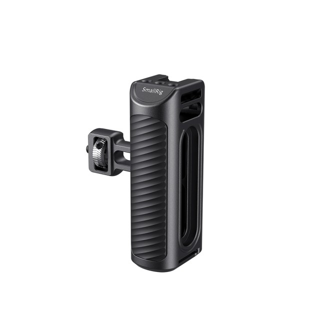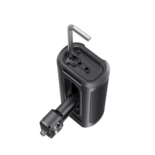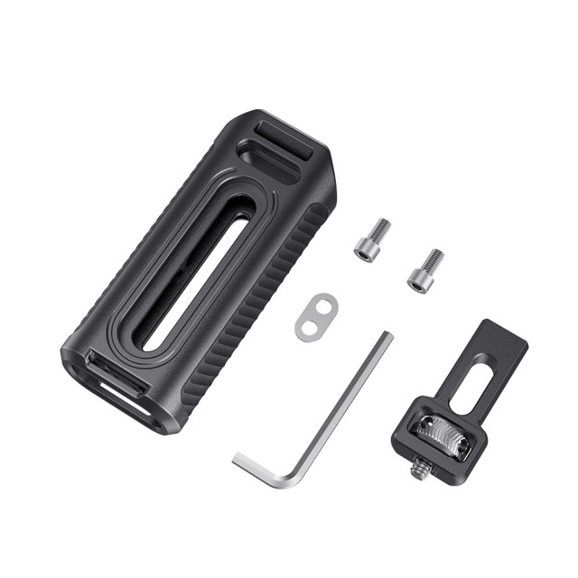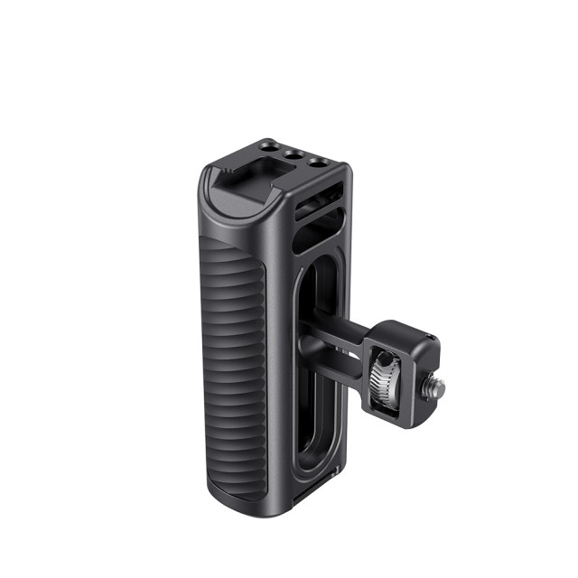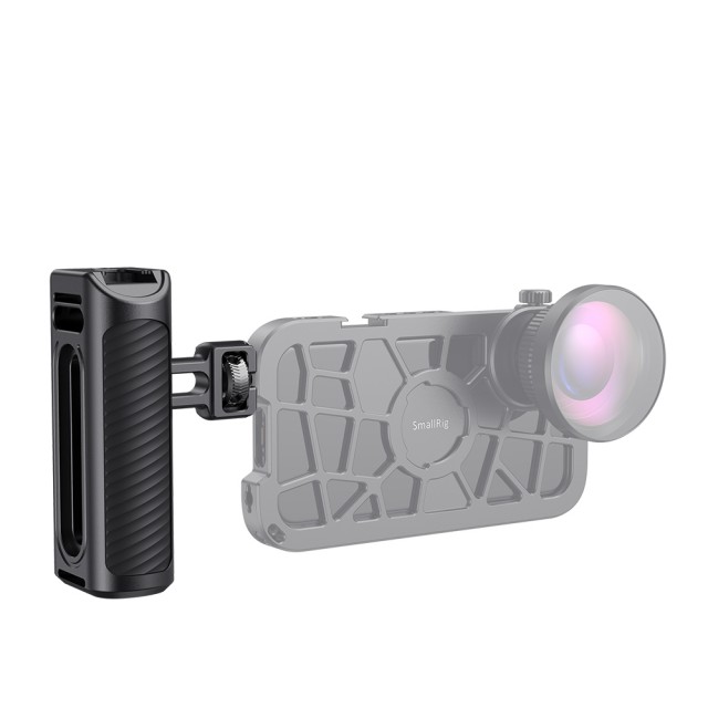 Aluminijasti stranski ročaj HSS2424 SmallRig za kletko za pametni telefon je zasnovan tako, da ustreza kletkam za telefon SmallRig in izboljša udobje prijema za trajnejši in stabilnejši oprijem telefona. Združljiv je s kletkami za mobilni telefon SmallRig Pro, kot so 2775, 2776 itd., in univerzalnimi kletkami SmallRig, kot so CPU2391B, 2791 itd. Z vgrajenim ključem lahko nastavite višino ročaja in zategnete zaporni vijak. Ima tri standardne luknje z navojem 1/4-20 in hladno držalo na vrhu za namestitev dodatne opreme, kot sta mikrofon ali luč LED. Ročaj je združljiv z ročnim pasom SmallRig PAC2456 za varnejše in stabilnejše snemanje iz roke. Tehta le 224 g in ima aluminijasto ohišje z nedrsečo silikonsko prevleko, ki zagotavlja udoben oprijem pri dolgotrajni uporabi.