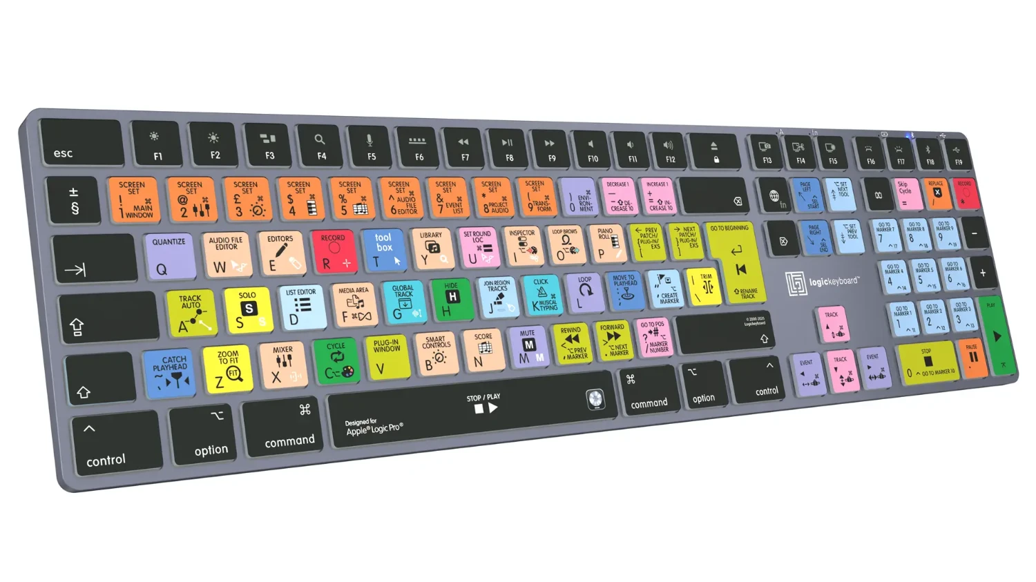 Zasnovana za Apple Logic Pro X – izdelana za MacTa Logickeyboard je vaša prva izbira za urejanje v Logic Pro. Hitre tipke, označene na tipkah, in njihove barvno označene definicije vas v hipu spremenijo v mojstra upravljanja Logic Pro. Logickeyboard je idealen za glasbene producente, avdio urednike in vse ostale, ki pridno delajo z Logic Pro.