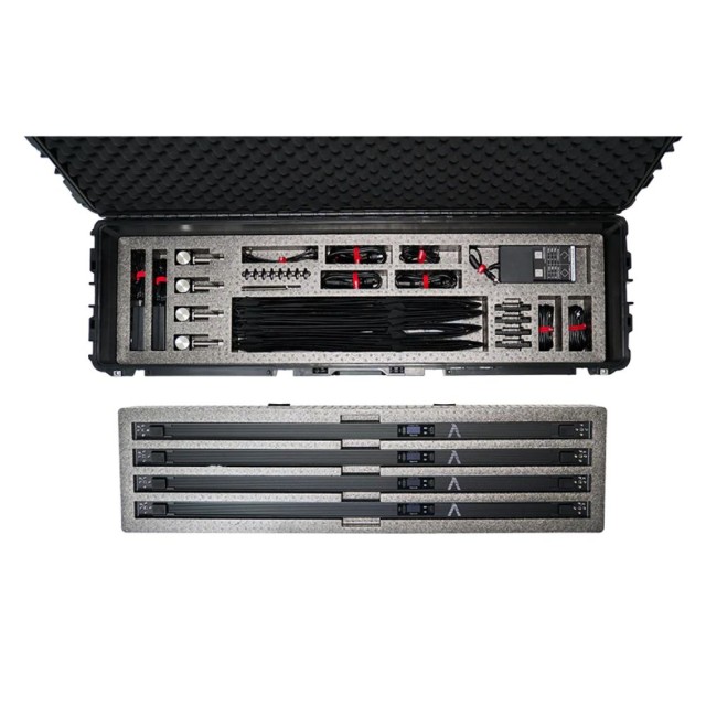 Komplet 4 luči INFINIBAR PB12 vključuje 4 polnobarvne pikselske ploščice LED RGBWW s temperaturnim razponom od 2.000 do 10.000 K. Vsaka je dolga 120 cm in vsebuje 96 posameznih svetlobnih območij RGB pikslov.