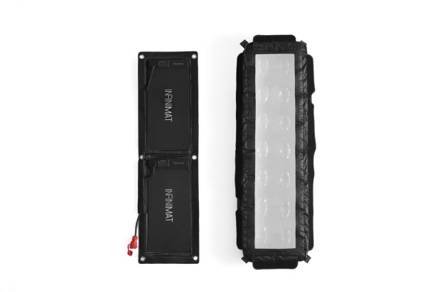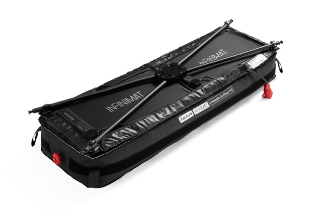 Svetlobni paneli NFINIMAT so zasnovani tako, da jih je mogoče brez težav pritrditi na napihljiv softbox enake velikosti s sistemom Velcro. Ko je softbox napihnjen, ima dovolj moči, da drži ploščo, svetlobno mrežo in svetlobni zaslon skupaj, tudi če je enota obrnjena navzdol ali nameščena na stojala. Z majhno zračno črpalko (priložena) lahko difuzor hitro in preprosto napihnete.