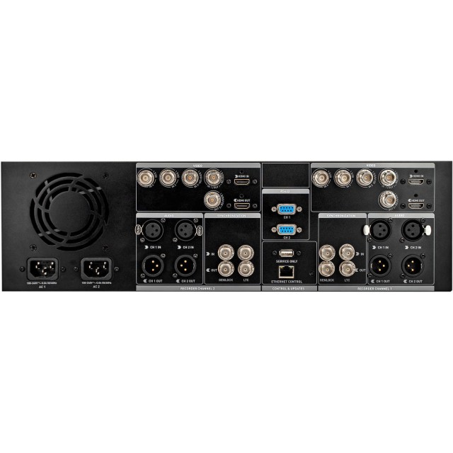 | Dvokanalno snemanje | Snemajte matriko 4K s posredniki HD. Snemanje različic ProRes in DNxHR, neodvisno dvokanalno snemanje. |