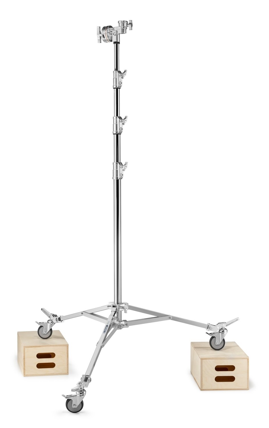 Stojalo Avenger A3043CS Overhead Stand 43 Steel z zavornimi kolesi je zasnovano za profesionalne fotografe, videografe in filmske ekipe, ki potrebujejo zanesljivo podporo za okvire, cevi in dodatke za osvetlitev. Stojalo je izdelano iz trpežnega kromiranega jekla in ima štiri dele, ki zagotavljajo izjemno trdnost in dolgotrajno vzdržljivost ter hkrati omogočajo nemoteno delovanje.