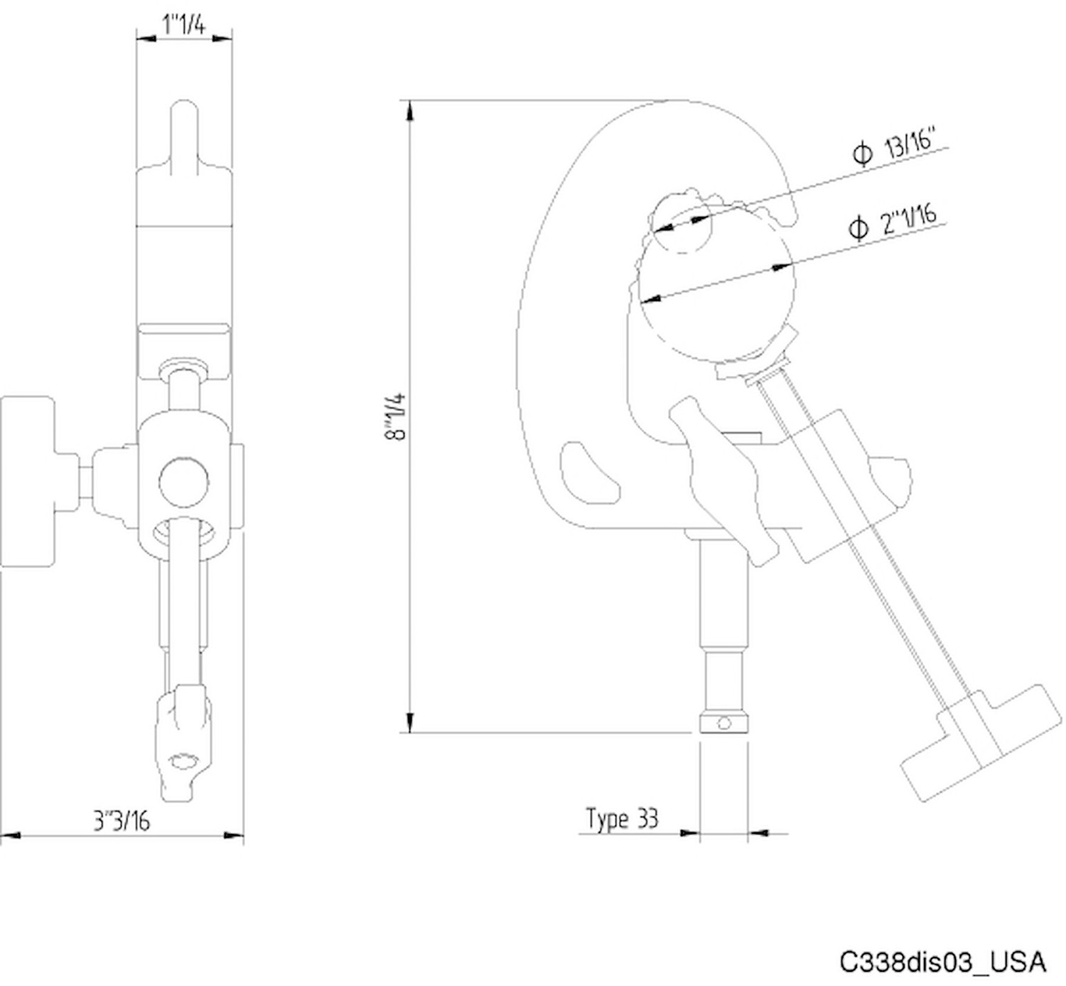 Avenger C339UH Grab Clamp z univerzalno glavo je vsestranski nosilec, zasnovan za