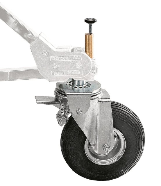 Gumijasta obloga, zasnovana za profesionalna studijska okolja in zahtevno delo na terenu, zagotavlja gladko gibanje po različnih površinah, hkrati pa zmanjšuje vibracije in poškodbe tal. Vrtljivi mehanizem ima 12 položajev za blokiranje, kar omogoča natančno pozicioniranje in nadzor smeri pri manevriranju težke opreme.