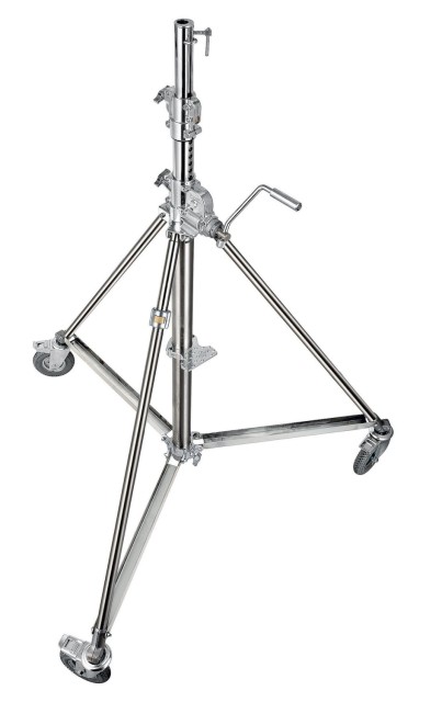 Stojalo Avenger B6040X Super Wind Up 40 je zasnovano za zahtevne profesionalne filmske in fotografske produkcije, ki zahtevajo največjo nosilnost, varnost in natančnost. Ta robusten trinožnik, izdelan iz nerjavečega jekla in kromovega jekla, ima zobniški stolp s tremi deli, ki se hkrati podaljšujejo z enim samim ročajem, kar zagotavlja gladko in nadzorovano nastavljanje višine.