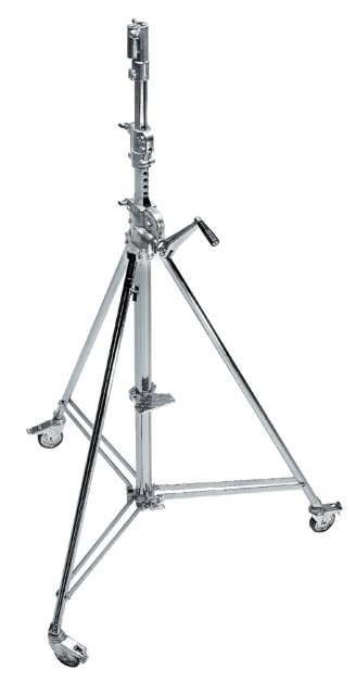 Avenger B6039CS Wind-Up Stand 39 je robusten, kromiran jekleni stativ, zasnovan za profesionalno fotografijo, film in studijske aplikacije. S maksimalno višino 3,83 m, nosilnostjo 30 kg in izravnalno nogo za neravno podlago ta robusten stativ združuje natančno nastavitev višine, mobilnost in stabilnost za zanesljivo podporo kamer, luči in druge opreme.
