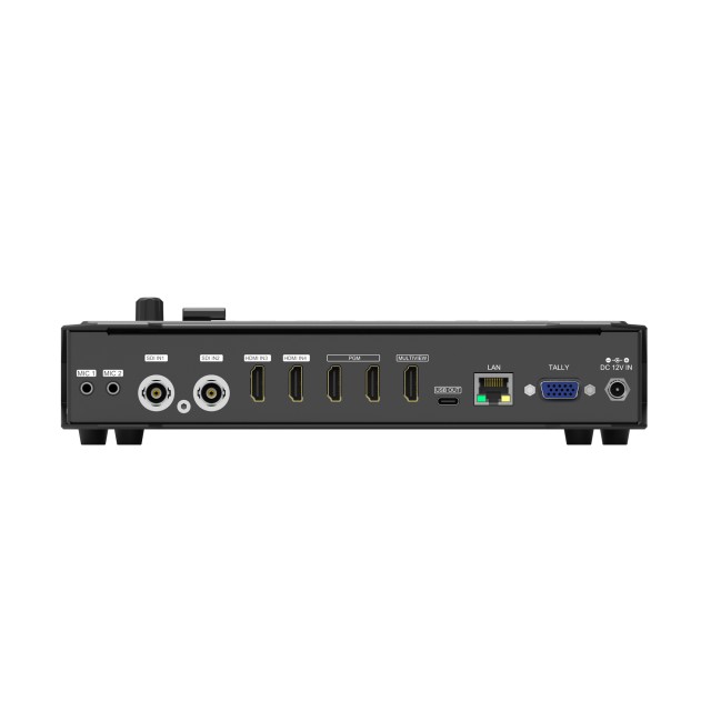 2×HDMI in 2×3G-SDI vhoda, podpora samodejnemu zaznavanju 2× izhod HDMI PGM, 1× večpredstavnostni izhod HDMI, 1× izhod USB tipa C Vse izhode je mogoče konfigurirati in dodeliti USB za zajemanje in pretakanje v računalnik ali telefon s sistemom Android Jasno vidna večpredstavnostna in statusna stran Gumb…