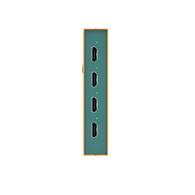 1×4 distribucijski ojačevalnik HDMI 4K60 z vgrajenim zaslonom. Napajalnik USB-C/DC, možnost namestitve v stojalo.