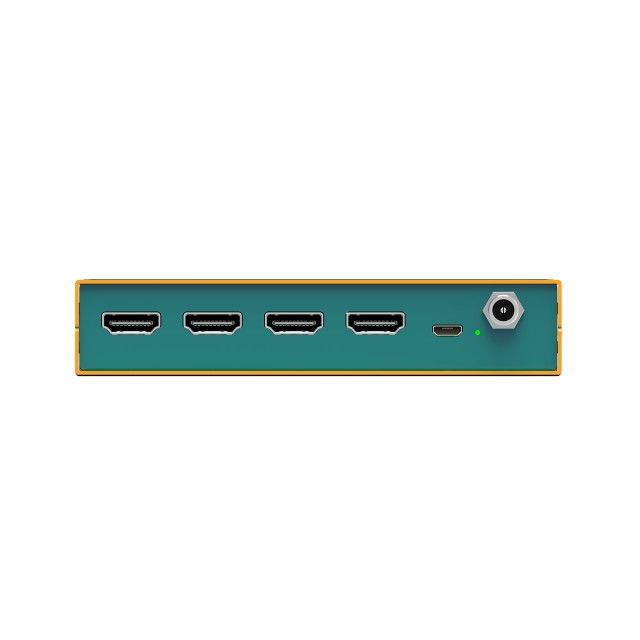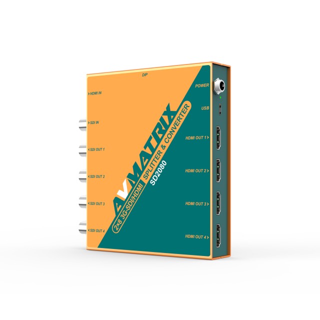 Samodejno zaznan vhod: 1×HDMI/1×3G-SDI Prehodni izhod: 4×3G-SDI, 4×HDMI Distribucija in pretvorba med SDI in HDMI SDI z izenačevanjem in prekrivanjem Podpira vhod in izhod do ločljivosti 1080p60 Enostavno preklapljanje vhodnega signala s stikali DIP Napajalnik USB in napajanje z enosmernim…