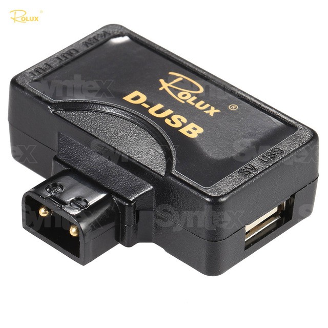 Adapter D-Tap z USB omogoča napajanje naprave USB iz ene same velike baterije V-Mount (ali Anton/Bauer) in hkratno uporabo D-Tapa.