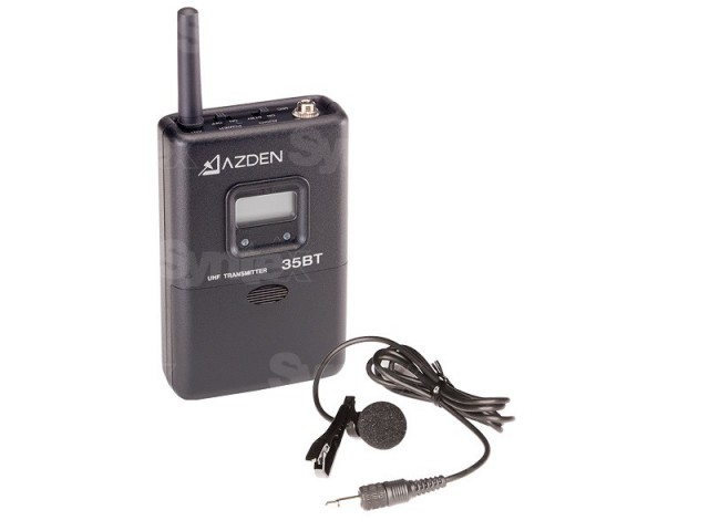 Azden 35BT-CE je brezžični oddajnik bodypack, ki vključuje vsesmerni lavalier mikrofon EX-503L s sponko.