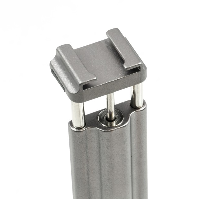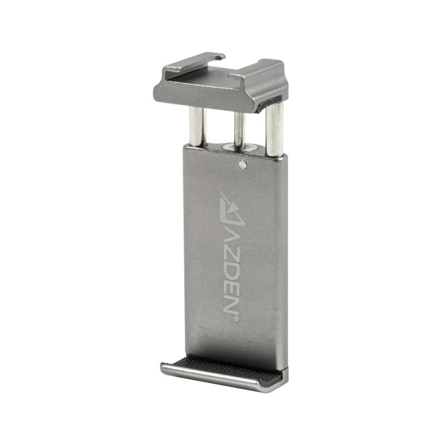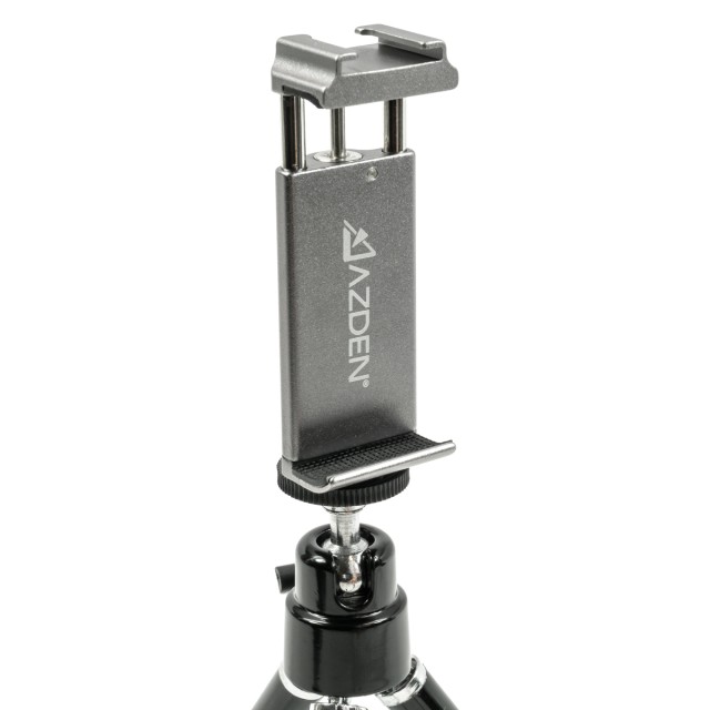 Nosilec za pametni telefonPriloženi nosilec uporablja vzmetno objemko za trdno pritrditev na skoraj vsak pametni telefon. Prilagodi se širini telefona od 2,4 do 3,3 palca, zato je združljiv tudi z največjimi pametnimi telefoni (phableti) na današnjem trgu. Za razliko od številnih drugih nosilcev za telefone ima naš nosilec režo cold-shoe, ki omogoča pritrditev mikrofona, brezžičnega sprejemnika ali druge dodatne opreme. Sam nosilec lahko pritrdite na priloženi stativ ali katero koli drugo stojalo za fotoaparat ali drog z luknjo z navojem ¼"-20. Nosilec je izdelan za dolgo življenjsko dobo, ima povsem kovinsko konstrukcijo in je kakovostno preizkušen, da zdrži več kot 6 000 potegov.