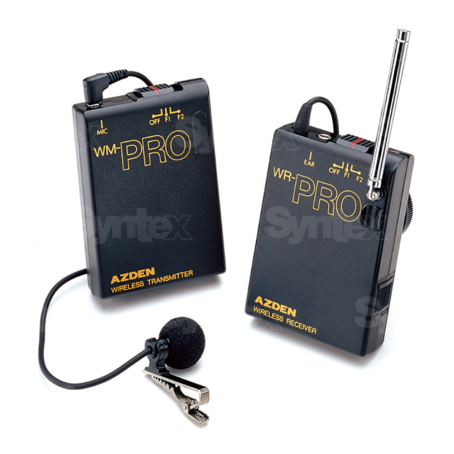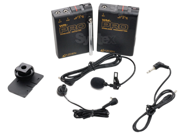 Azden WLX-PRO je celovit sistem, ki vključuje oddajnik WM-PRO Beltpack, elektretni mikrofon EX-503 in sprejemnik WR-PRO, ki je opremljen z nastavkom za čevlje in Velcro zapiralom. Vsi oddajniki in sprejemniki serije PRO delujejo na istih dveh frekvencah (169,445 MHz in 170,245 MHz).