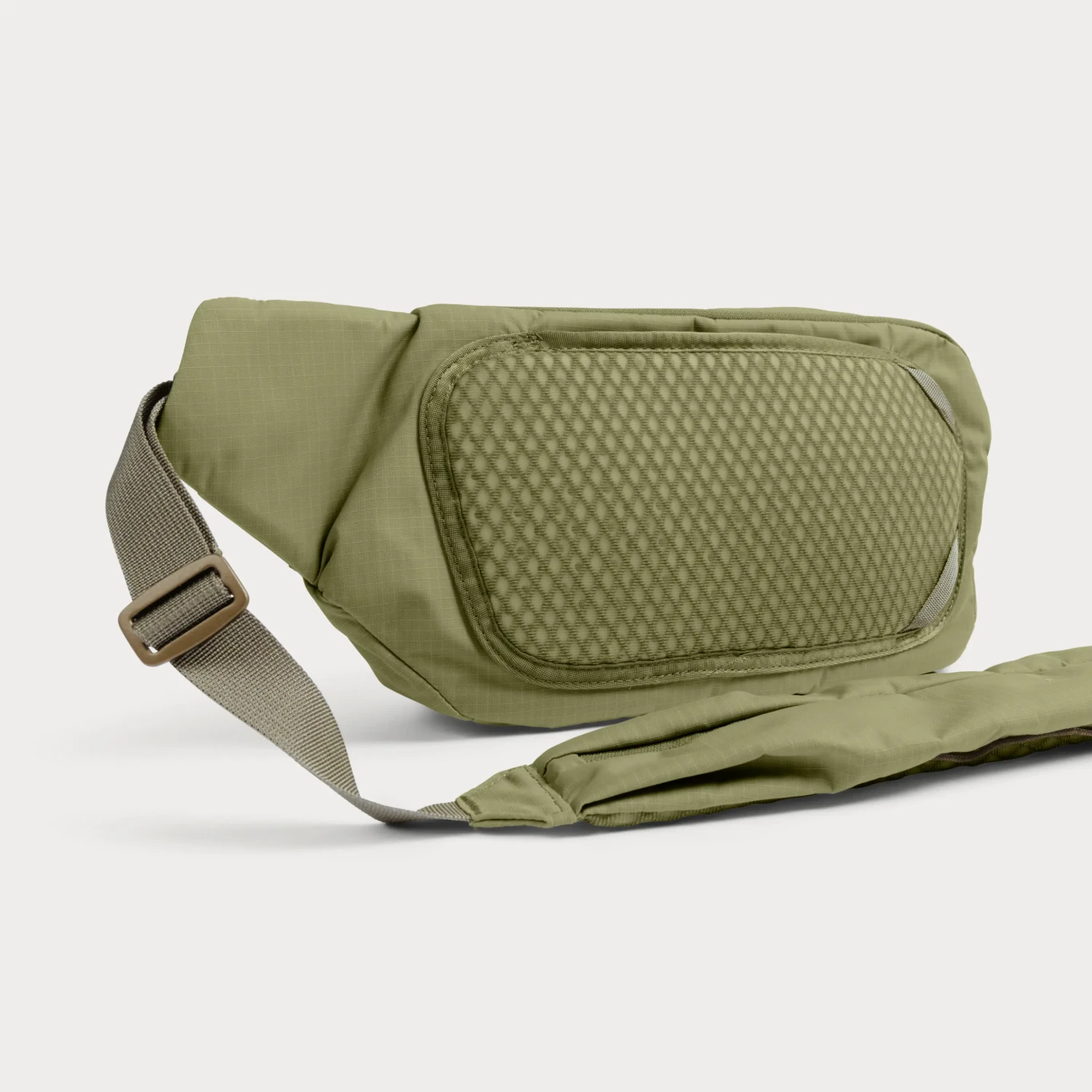 Pritrdi se na glavni trak, da ustvari tritočkovno držanje, ki torbo varno drži na telesu, medtem ko se premikate.