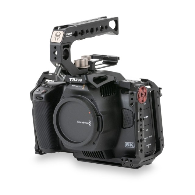 Opremite fotoaparat s kletko Tiltaing Camera Cage za kameri Blackmagic Pocket Cinema Camera 6K Pro in 6K G2. Ta osnovni komplet za kamero BMPCC6K Pro/G2 zagotavlja zaščitni oklep za ohišje kamere in vključuje nekaj ustreznih dodatkov za izboljšanje funkcionalnosti. Celotna kletka ponuja več navojev 1/4"-20 z namestitvenimi zatiči, sprejemnike za hladno čeveljnico, tirnico NATO za stranska držala tipa IV in VI ter odprtine za pritrditev palic za naša držala za eno palico. Ima tudi z ARRI združljive rozete, ki so posebej zasnovane za naš nastavljiv zgornji ročaj Plus za bolj prilagodljivo upravljanje in rokovanje. Modul desne stranske roke je mogoče odstraniti in tako to polno kletko spremeniti v polovično kletko. To omogoča večjo prilagodljivost v primerih, ko so potrebne lažje konstrukcije, na primer pri uporabi kardana. Spodnja plošča zagotavlja več pritrdilnih točk ¼"-20 za pritrditev fotoaparata na različne plošče za hitro sproščanje in je združljiva s sprejemnikom ARCA montažne plošče RS2.