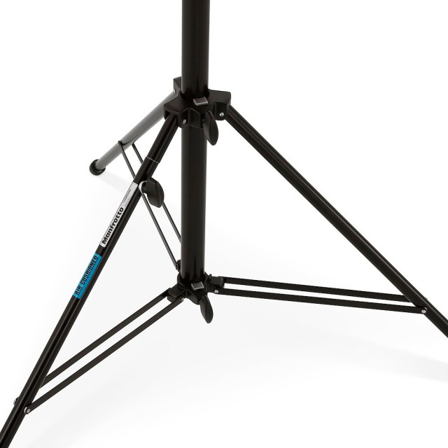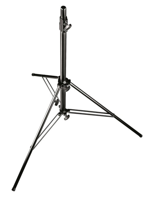 Manfrotto 126BMUAC črn stojalo z zračno blazinico za izravnavanje nog LE je 2,87 kg težko aluminijasto 2-delno (1-podaljšek) stojalo za svetlobno opremo, ki se razteza od 106 do 218 cm z nosilnostjo 30 kg (10 kg pri maksimalni raztegnitvi), zračno blaženimi dvigali, dvojno ojačenimi nogami, eno izravnalno nogo in 35 mm moškim nastavkom – zagotavlja trdno stabilnost, primerno za zvočnike, za osvetljevanje v studiu ali na lokaciji.