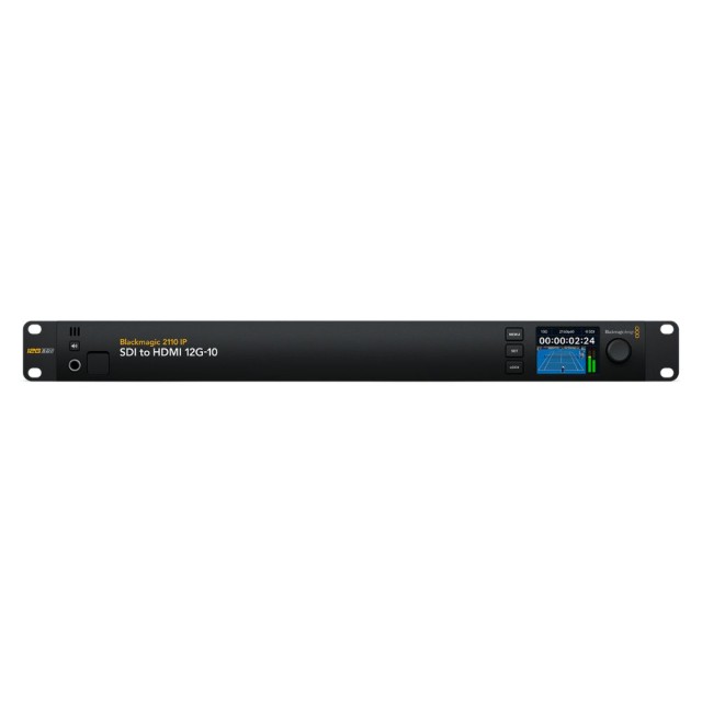 Blackmagic 2110 IP SDI v HDMI 12G-10 pretvarja video 12G-SDI ali SMPTE-2110 v HDMI v obliki za montažo na stojalo. Ponuja najvišjo kakovost pretvorbe med vsemi video standardi SD, HD in Ultra HD, vključno s podporo 3D LUT za natančno kalibracijo zaslonov HDMI. Na voljo bo predvidoma junija 2025.