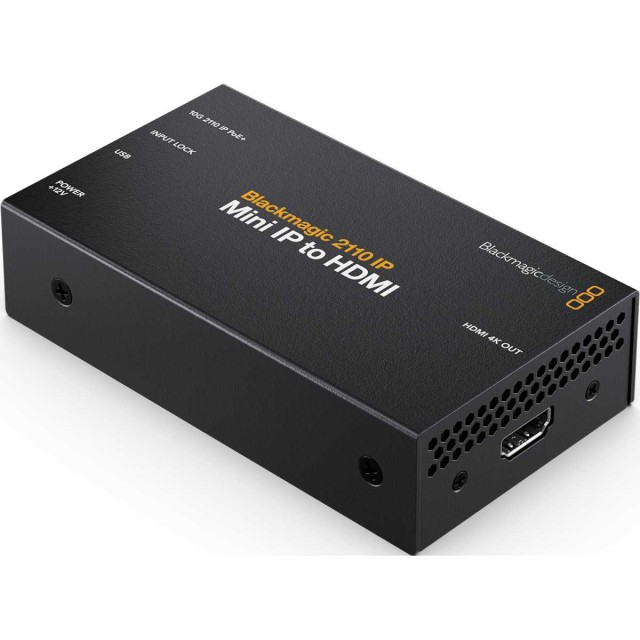 Blackmagic Design ima na voljo široko paleto izdelkov za IP-video SMPTE-2110, vključno s pretvorniki, video monitorji, avdio monitorji in celo kamerami. Poleg tega podpirajo Ultra HD z uporabo nizkocenovnega omrežja 10G Ethernet. Večina modelov pretvornikov je dvosmernih, zato so fantastični za uporabo na kamerah, ko stranke potrebujejo dodatno vračanje programa. Modeli za montažo v stojalo imajo elegantno zasnovo z barvnim zaslonom LCD za spremljanje, menije in diagnostiko. Vsi modeli so skladni s standardom SMPTE ST-2110 za video IP, vključno z urami PTP in celo s podporo NMOS, tako da lahko stranke vzpostavijo povezave z uporabo plošče video usmerjevalnika.