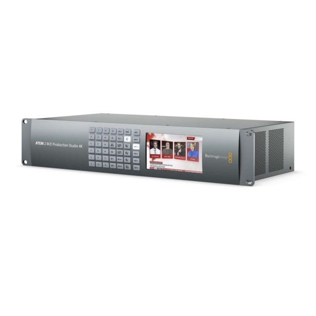 Izdelek ATEM 2 M/E Production Studio 4K je nameščen v elegantno, robustno ohišje z aluminijasto sprednjo ploščo višine 2U. Na sprednji plošči so gumbi, ki omogočajo preklapljanje med šestimi neodvisnimi pomožnimi izhodi, signal, prisoten na njih, pa lahko nato spremljate na 5-palčnem zaslonu LCD, ki se nahaja tam. Preklop pomožnih izhodov je namenjen nastavitvi naprave in preklopu med oddajami v živo. Visoko robustnost strojne opreme dopolnjuje namenski, stabilen operacijski sistem. V nasprotju z nizkocenovnimi režijskimi napravami uporablja ATEM 2 M/E Production Studio 4K operacijski sistem industrijskega razreda za največjo zanesljivost delovanja.