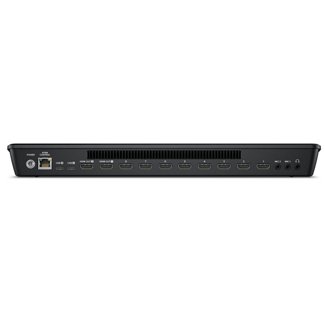 Pri bolj zapletenih produkcijah z večjim številom kamer morate vse izhodne podatke iz kamer in drugih video virov pregledati skupaj, na enem samem monitorju. Modela ATEM Mini Pro in ATEM Mini Extreme ponujata profesionalni večpredstavnostni izhod za predogled vseh video vhodov ter prikazov programa in predogleda na monitorju ali televizorju HDMI. Vsak od predogledov kamer prikazuje tudi naslove, merilnike zvoka in indikator za izmero. Večpredogledni predogled prikazuje tudi predvajalnik medijev, stanje snemanja in pretakanja ter virtualno mešalno konzolo Fairlight.
