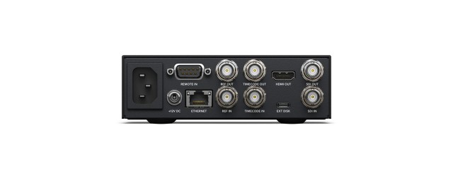 vmesniki 3G-SDI, 6G-SDI ali 12G-SDI Odvisno odmodela snemalniki ponujajo široko paleto vmesnikov, vključno z vmesniki 3G-SDI, 6G-SDI ali 12G-SDI, vse različice brez izjeme pa imajo izhod HDMI za povezavo s televizorji in projektorji. Modela Pro in Plus imata tudi namenski izhod SDI za predogled s prikazom dodatnih informacij ter par izhodov SDI za predvajanje datotek ProRes 4444 v načinu Fill and Key za režijske delovne postaje. Standardni ethernetni priključek 1 Gb/s na snemalnikih HyperDeck je pri modelu 4K zamenjan z izjemno hitrim vmesnikom 10G.