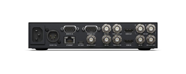 vmesniki 3G-SDI, 6G-SDI ali 12G-SDI Odvisno odmodela snemalniki ponujajo široko paleto vmesnikov, vključno z vmesniki 3G-SDI, 6G-SDI ali 12G-SDI, vse različice brez izjeme pa imajo izhod HDMI za povezavo s televizorji in projektorji. Modela Pro in Plus imata tudi namenski izhod SDI za predogled s prikazom dodatnih informacij ter par izhodov SDI za predvajanje datotek ProRes 4444 v načinu Fill and Key za režijske delovne postaje. Standardni ethernetni priključek 1 Gb/s na snemalnikih HyperDeck je pri modelu 4K zamenjan z izjemno hitrim vmesnikom 10G.