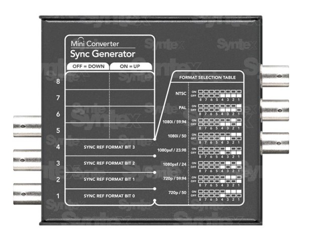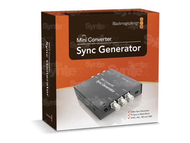 Mini pretvornik Sync Generator ima šest kristalno stabiliziranih referenčnih izhodov. Z njim lahko preprosto sinhronizirate video opremo v studiu po standardih Tri-Sync (HD) ali Blackburst (SD). Idealen za manjše studie ali delo na terenu!