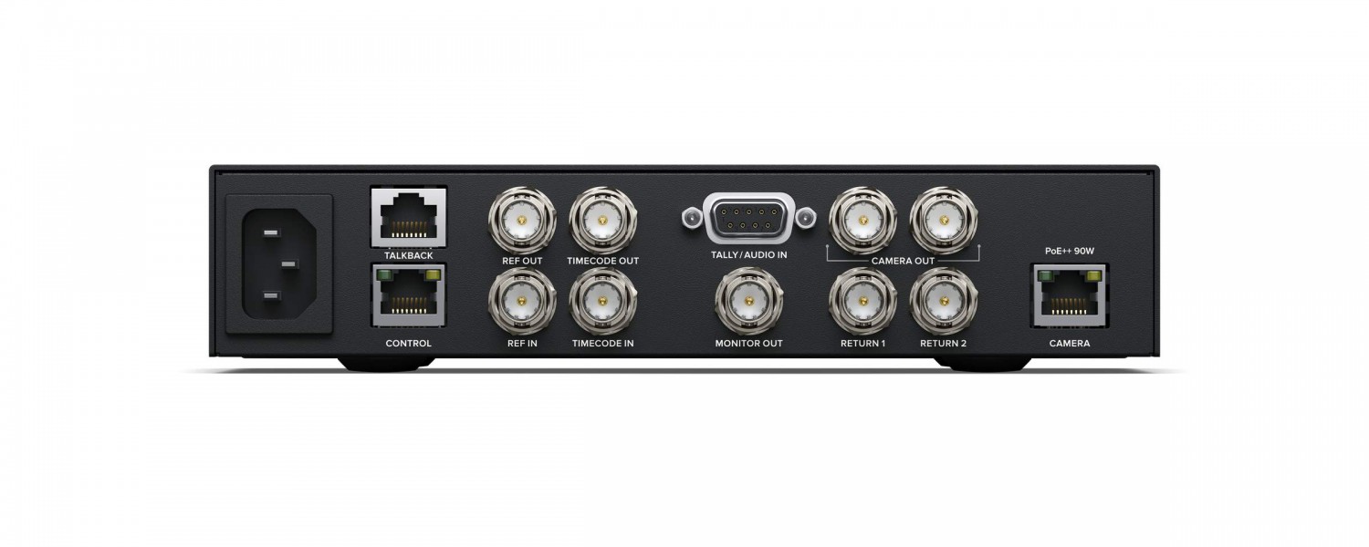 Izbirni pretvornik vmesnika kamere 10G Ethernet Kamera Blackmagic Studio 4K omogoča prenos videa, signalnih ukazov, komunikacijskega kanala in napajanja kamere po enem kablu, podobno kot hibridni vmesnik SMPTE Fiber, vendar po bistveno nižji ceni ethernetnega kabla Cat 6A. Pretvornik Blackmagic Studio Converter opravi vse pretvorbe v režiji in dopolni ethernetni vmesnik z napajanjem PoE do kamere. Ponuja 2x 12G-SDI I/O, izhod za spremljanje 3G-SDI, 1x RJ-45 10G Ethernet s podporo PoE, I/O za časovno kodo in referenčni signal (Tri-Sync ali Black Burst), povratni govor (kanali SDI 13-16 in RJ-45), 2,2-palčni zaslon LCD, izhod za slušalke in vgrajeni zvočnik itd. V prodaji od 12/2021.