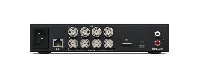 Na sprednji maski so nameščeni upravljalni elementi in barvni zaslon za prikaz signala, prisotnega na video vhodu, merilniki zvoka in indikator video formata. Na zadnji plošči je na voljo vmesnik Quad Link 12G-SDI, združljiv s standardi HD, Ultra HD in 8K. Na voljo sta tudi dva priključka DisplayPort: en standardni in en v slogu USB-C za nove monitorje, kot je Pro Display XDR. Vgrajena funkcija za spreminjanje ločljivosti videa zagotavlja prisotnost pravilnega video signala za monitor, ki je priključen na vmesnik DisplayPort.