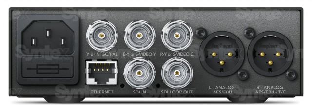 Izdelki Teranex Mini so opremljeni tudi s standardnimi priključki XLR za simetrične zvočne linije, digitalne vmesnike AES/EBU ali za priključitev virov časovne kode. Uporabniki lahko uporabljajo standardno studijsko ožičenje z zanesljivo vrsto priključka, ki ima ključavnico za preprečevanje nenamernega izvleka kabla. Zvočno vezje naprave Teranex Mini je bilo popolnoma na novo zasnovano za izjemno nizko raven šuma (več kot -115 dBFS) in najvišjo kakovost zvoka.