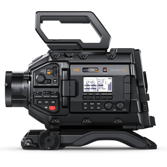 Kamera URSA Broadcast G2 je opremljena z ramenskim naslonom, baterijsko ploščo V-Lock, nastavkom za objektiv B4/EF in zgornjim ročajem, zato te dodatne opreme ni treba kupiti posebej. Po želji lahko enoto opremite z iskalom Blackmagic URSA Viewfinder ali Blackmagic URSA Studio Viewfinder, pretvornikom Blackmagic Design Studio Converter za povezavo kamere prek vmesnika SMPTE Fiber Optic ali zunanjim snemalnikom URSA Mini Recorder za snemanje videoposnetkov na SSD.