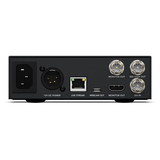 Naprava vključuje izhod za spletno kamero USB, standardni pretvorjeni vhod 12G-SDI in izhod za spremljanje toka. Poleg tega lahko pretakate prek interneta prek etherneta ali priključite telefon s 5G ali 4G, da izkoristite mobilne podatke , in prek novih funkcij pretakanja v oblaku Blackmagic Cloud.
