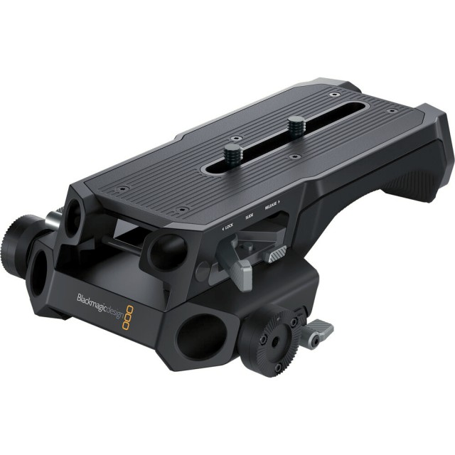 Blackmagic URSA Cine Baseplate 19 zagotavlja robustno rešitev za pritrditev kamere URSA Cine 12K, opremljeno z 19-mm studijskimi in 15-mm LWS-vtičnicami, dvojnimi rozetami in ramensko blazinico za vsestransko namestitev na stativ ali ramenski nosilec.