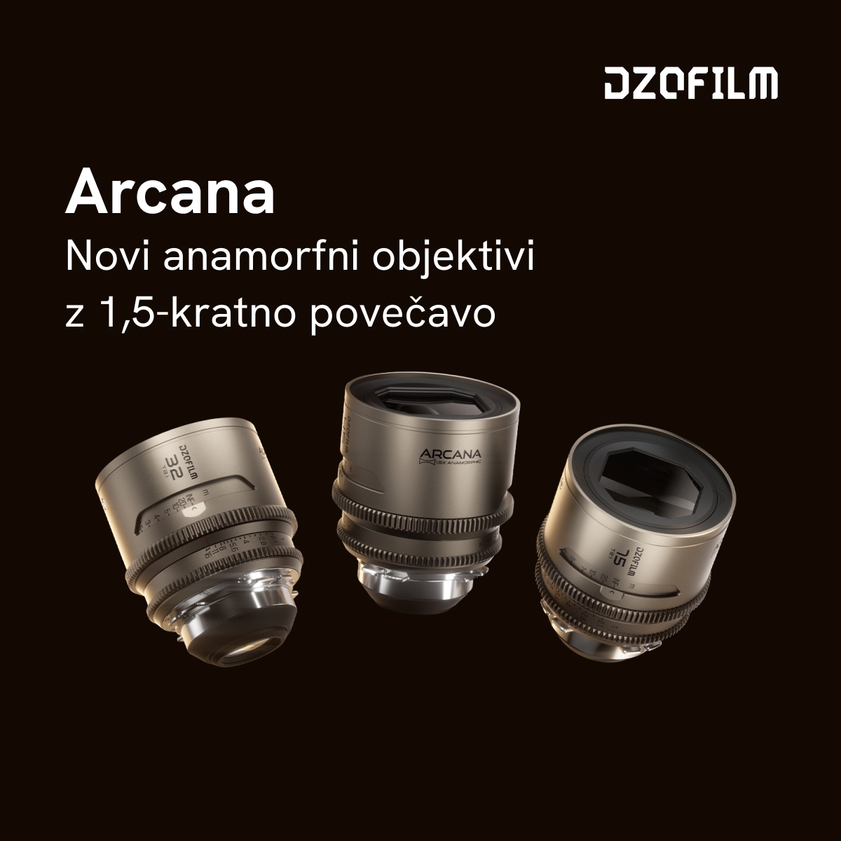 PodjetjeDZOFILM je na trglansiralo nov polnoformatni anamorfni objektiv DZOFilm Arcana 1,5× T2,1! Objektiv je na voljo z goriščnimi razdaljami 32 mm, 45 mm, 75 mm ter kot komplet treh objektivov. Ob nakupu tega kompleta boste do 23. aprila 2026 brezplačno prejeli kot darilo Octopus Adapter za objektiv s PL-priključkom za kamero DJI Ronin 4D (PL-DX, lahek)!