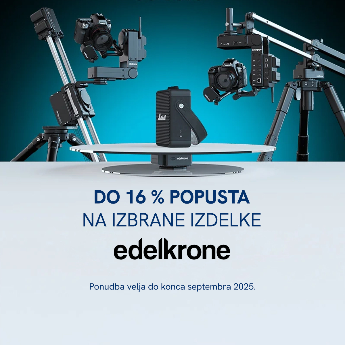 Prejmite popust na izbrane izdelke Edelkrone, idealne za profesionalne fotografe in videografe! Do konca septembra 2025 lahko izkoristite popuste do 16 % na drsnike, vozičke, stative in drugo inovativno opremo. Izbirate lahko TUKAJ.