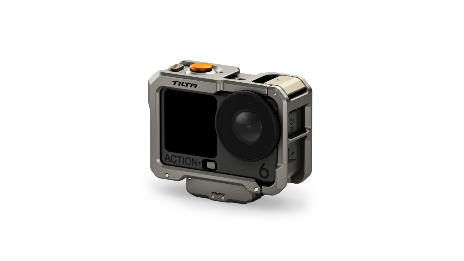 Sada obsahuje magnetickou základnu, kterou lze připevnit v obou směrech a která podporuje další příslušenství se závitem 1/4″-20, což nabízí flexibilitu pro různé konfigurace natáčení. Horní část klece obsahuje ergonomické prodloužení tlačítek pro snadný přístup k funkcím napájení a nahrávání, zatímco slot pro kartu a dvířka baterie zůstávají volné pro rychlou výměnu.
