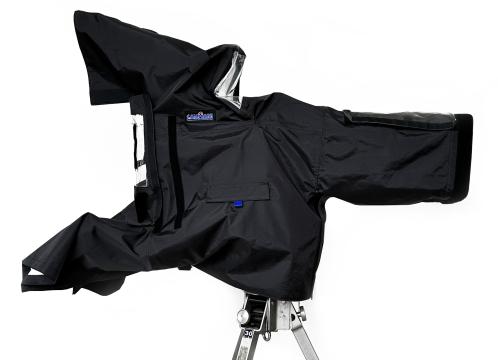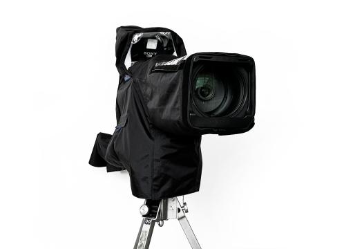 Univerzalna zaščita za širok nabor zunanjih radiodifuznih kamer z velikim adapterjem za objektiv, iskalo in sončno zaščito iskala. Vključuje vodoodporno torbico za shranjevanje.