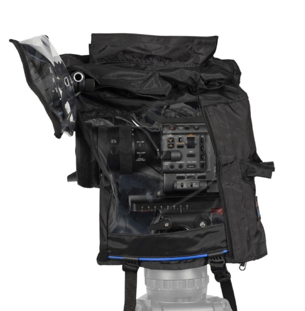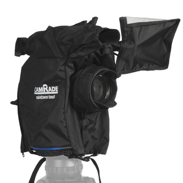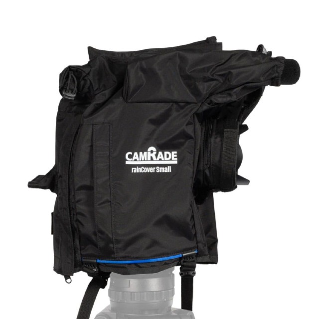 RainCover Small je zanesljiv dežni pokrov za majhne fotoaparate cine in fotoaparate polnega formata. Na voljo je z vgrajenim pokrovom za monitor iskala, na fotoaparat pa se hitro pritrdi z velcro in zadrgami.