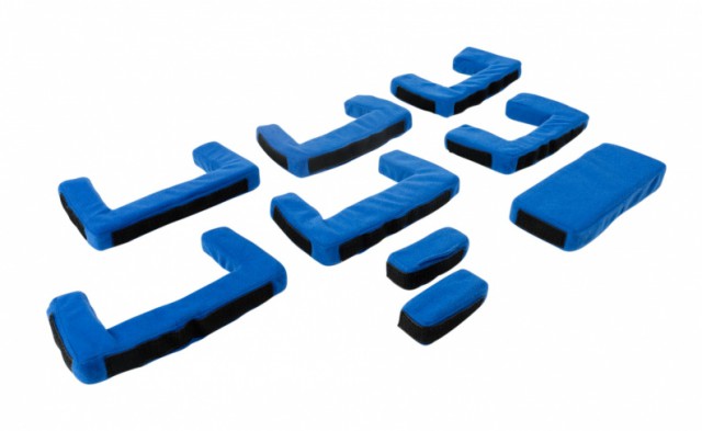 Zaradi raznolikosti odbojnikov (9), ki so priloženi tej torbi, imate največjo prilagodljivost pri izbiri naprav, pa tudi svobodo gibanja med snemanjem. Izberite pravo kombinacijo odbijačev za zavarovanje naprave, ki jo boste uporabljali, in pritrdite elastični trak, da bo vse varno na svojem mestu.