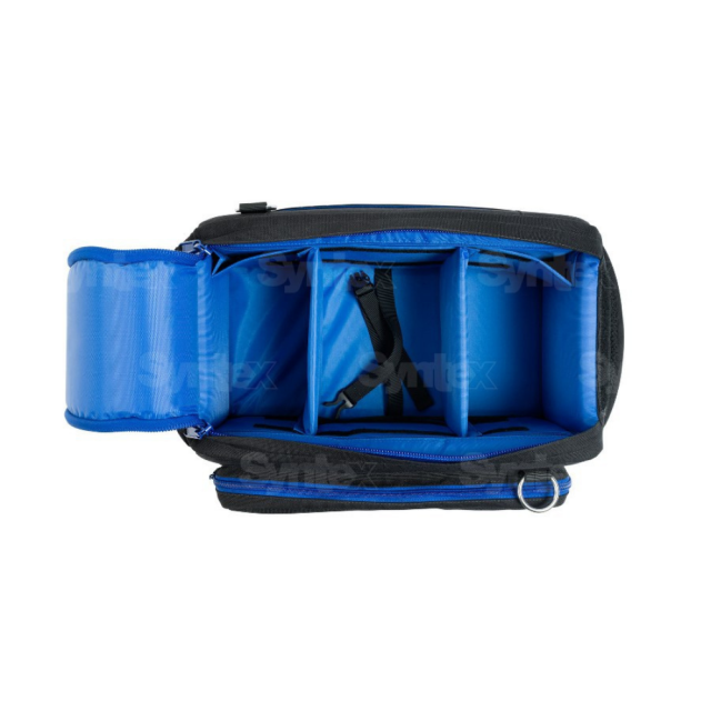 Na sprednji strani torbe je velik žep za kable in dodatno opremo. V notranjosti je mrežast žep, ki omogoča enostavno shranjevanje manjših predmetov in dokumentov. V glavnem predelu je pas za zategovanje v obliki traku, ki fotoaparat med prevozom ohranja varen. Dno torbe ima zaščitno armaturno ploščo, ki je prekrita z vodoodporno nedrsečo prevleko. Skupaj z ojačanimi vložki tvori močan lahek okvir, ki bo zaščitil vašo fotografsko opremo v vseh razmerah.