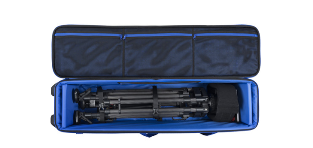 Torba za stativ camRade tripodBag heavyDuty je zasnovana za profesionalce, ki zahtevajo zanesljivo in trajno zaščito za svoje vrhunske stative. Njena gladka kolesa in škatlasta oblika preprečujejo naključno kotaljenje na vozičkih ali tekočih trakovih, vgrajena kolesa in tri oblazinjena ročaja iz semiša pa omogočajo enostavno manevriranje. Notranjost meri 42,5 palca in sprejme kombinacije stativov/glav do 40 palcev v zloženem stanju, z dvema odstranljivima odbojnikoma za varovanje opreme med prevozom.