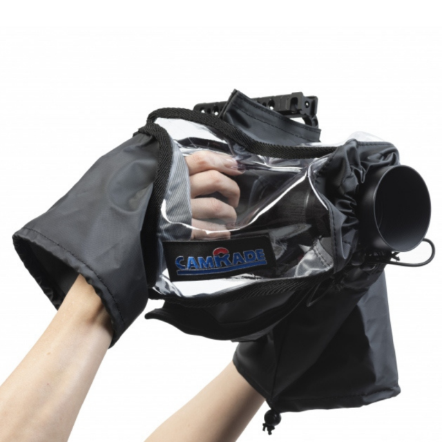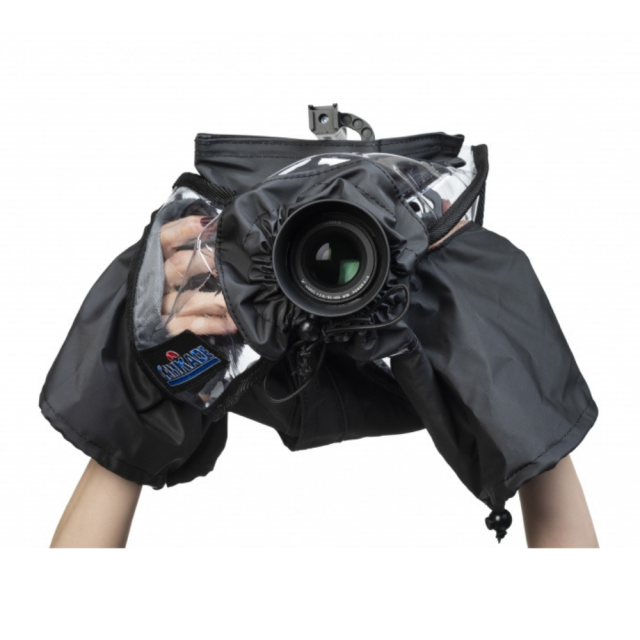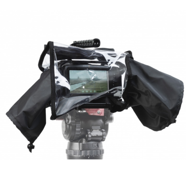 Dežni plašč, posebej prilagojen za kameri Blackmagic Pocket Cinema Camera 4K in 6K, ki jo ščiti pred dežjem, vlago in prahom.